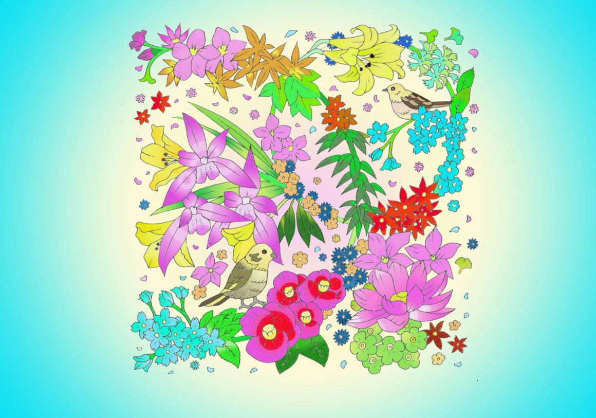 心やすらぐきれいな花々と小鳥